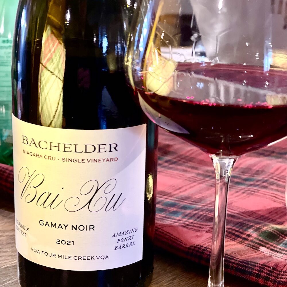 Bachelder Bai Xu Single Vineyard Gamay Noir 2021 ($30, 93 points) — This 32% Whole Cluster Gamay hails from the oldest vines Thomas Bachelder works with, planted in 1981 on Line 3 in NOTL. Bachelder said that the Bai Xu soil is more like the limestone soil on the Bench compared to sandy soil generally in NOTL. It has lovely florals on the nose with pure dark cherries, raspberries, and subtle black currants in a chiselled, eleganty spiced style. It’s gorgeous on the palate with just a touch of tannic structure and a broad array of summer red berries, cassis, subtle brambly/earthy notes, integrated spice, and freshening acidity on the finish. Can cellar 5+ years.